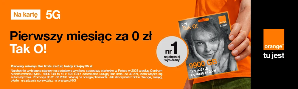 Od 1 marca 2026 r . do 31 sierpnia 2026 r. trwa promocja, w ramach której nowy Użytkownik oferty Orange na kartę, może przez miesiąc za darmo korzystać z usługi Bez limitu oraz odebrać bonus 9900 GB (12 paczek po 825 GB) po spełnieniu określonych w Regulaminie warunków.