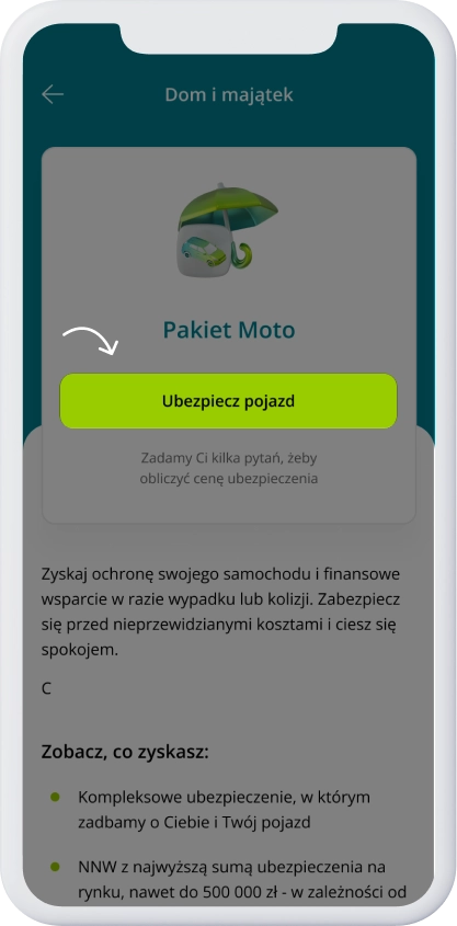 Ubezpieczenie Pakiet Moto możesz zakupić w aplikacji mobilnej: