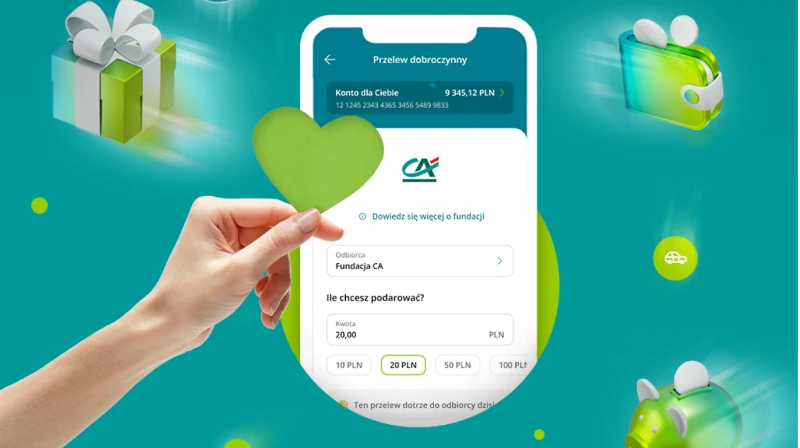 Mikołajki to doskonała okazja, by podzielić się dobrem z tymi, którzy najbardziej go potrzebują. Zachęcamy klientów, aby 6 grudnia – i każdego innego dnia – stali się współczesnymi świętymi Mikołajami. W apce CA24 Mobile można w kilka chwil przekazać przelew dobroczynny na rzecz wybranej organizacji pomocowej.