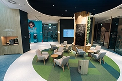 Centralna strefa placówki nazywana jest „epicentrum”. Nie tylko dlatego, że znajduje się w środku lokalu, ale również symbolizuje pełne skupienie na potrzebach klienta. - Chcemy, żeby klient czuł tę spójność: wyjątkowe wnętrze i wyjątkową kulturę obsługi w wyjątkowym banku – podkreśla Beata Borucka, managerka projektów marketingowych.