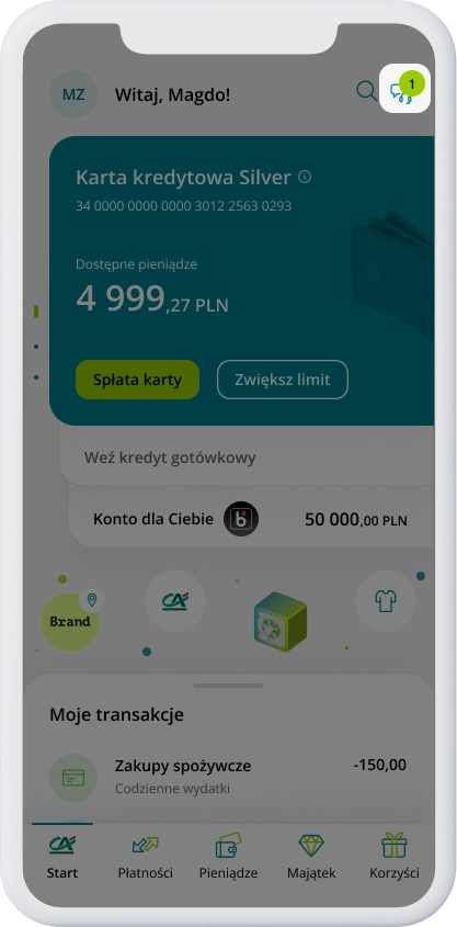 Aplikacja CA24 Mobile pozwoli Ci w prosty, wygodny, a przede wszystkim bezpieczny sposób zarządzać swoimi kontami, kartami, kredytami lub produktami oszczędnościowymi. Dzięki niej możesz też zrobić przelewy, spłacić kredyt, doładować telefon albo założyć lokatę. Dodatkowo, masz pełną kontrolę nad swoimi kartami i limitami transakcji. Samodzielnie możesz zmienić PIN do karty, czy limit płatności, a w razie potrzeby zastrzeżesz, zablokujesz i zamówisz nową kartę.