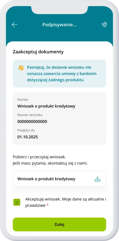 Tak. W aplikacji możesz podpisać aneks do umowy karty kredytowej i karty do konta (debetowej).